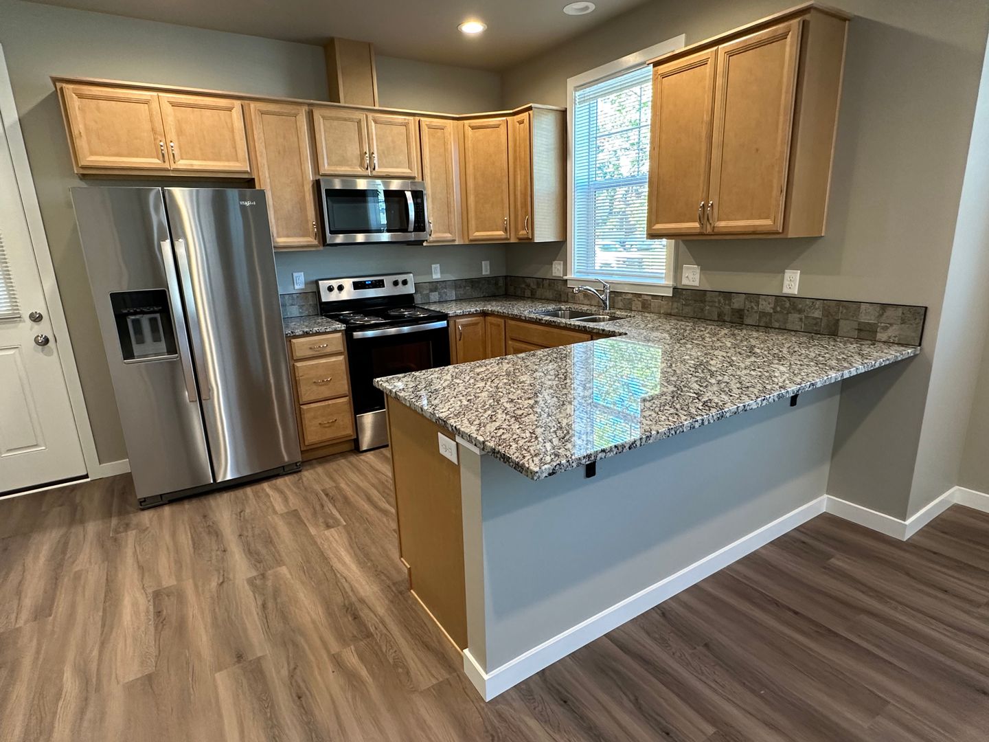 New 4 Bedroom / 4.5 Bath Townhome. Every room has an A/C unit in them. Each larger than normal bedroom is your own master bedroom with your own full bathroom & walk in closets. This is a great close in downtown location. Close to everything including the U of O for those that want to be close enough without being in the thick of the student world. LOTS OF PARKING ON THE PROPERTY. There is a large 1 car garage for this unit with another spot for parking in the driveway. All solid surfaces including granite counters and vinyl plank floors. We only charge $35 a month for pet rent as well as an additional deposit of $250.